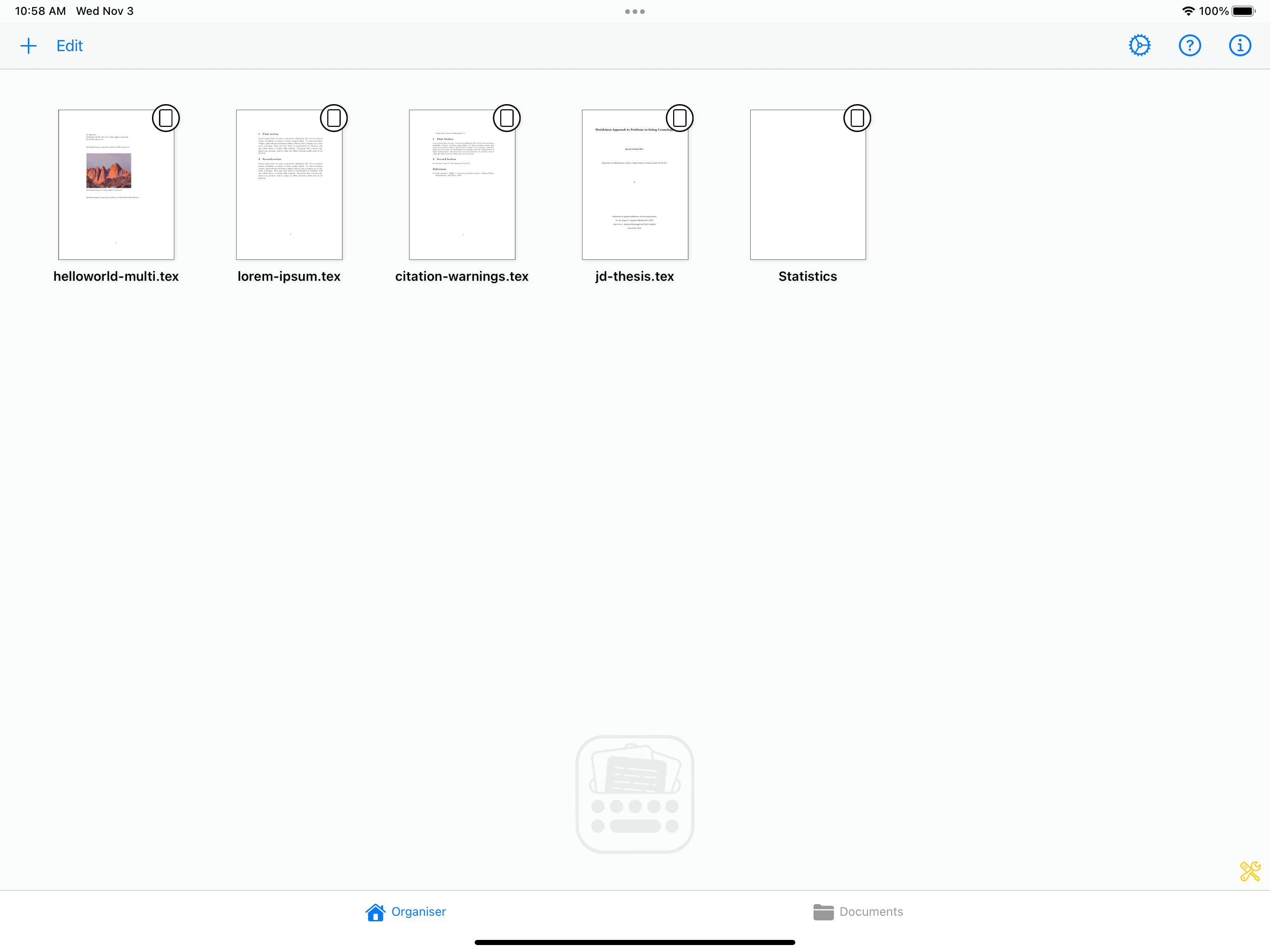 Once a file or a multi-file project is opened in Texifier, it is registered as a thumbnail. This thumbnail will show the first page of the PDF you last typeset for the project:
